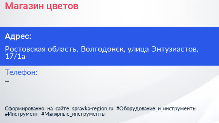 Магазин цветов по адресу Ростовская область, Волгодонск, улица Энтузиастов, 17/1а в дальнейшем Организация, размещена в следующих категориях: