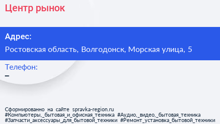 Центр, рынок по адресу Ростовская область, Волгодонск, Морская улица, 5 в дальнейшем Организация, размещена в следующих категориях: