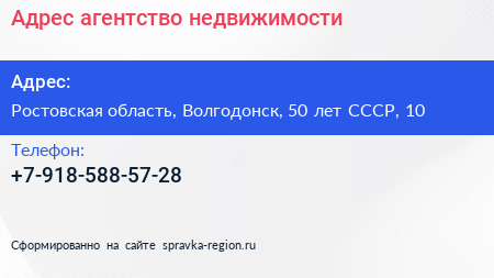 Адрес, агентство недвижимости по адресу Ростовская область, Волгодонск, 50 лет СССР, 10 в дальнейшем Организация, размещена в следующих категориях: