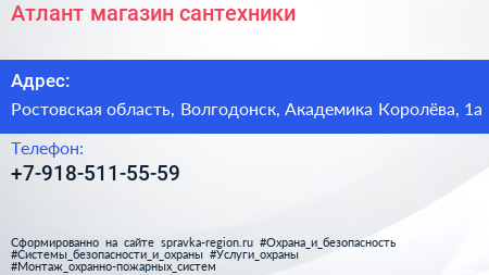 Атлант, магазин сантехники по адресу Ростовская область, Волгодонск, Академика Королёва, 1а в дальнейшем Организация, размещена в следующих категориях:
