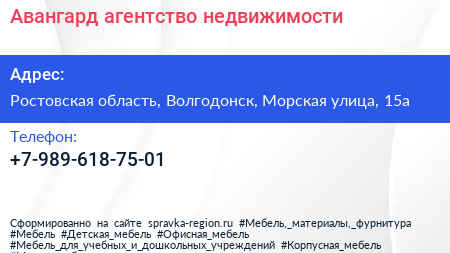 Авангард, агентство недвижимости по адресу Ростовская область, Волгодонск, Морская улица, 15а в дальнейшем Организация, размещена в следующих категориях: