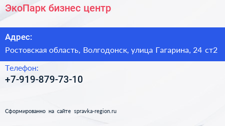 ЭкоПарк, бизнес-центр по адресу Ростовская область, Волгодонск, улица Гагарина, 24 ст2 в дальнейшем Организация, размещена в следующих категориях: