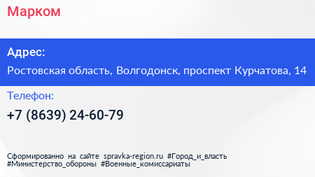 Марком по адресу Ростовская область, Волгодонск, проспект Курчатова, 14 в дальнейшем Организация, размещена в следующих категориях: