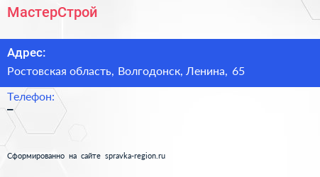 МастерСтрой по адресу Ростовская область, Волгодонск, Ленина, 65 в дальнейшем Организация, размещена в следующих категориях: