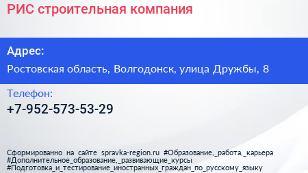 РИС, строительная компания по адресу Ростовская область, Волгодонск, улица Дружбы, 8 в дальнейшем Организация, размещена в следующих категориях:
