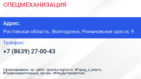 СПЕЦМЕХАНИЗАЦИЯ по адресу Ростовская область, Волгодонск, Романовское шоссе, 9 в дальнейшем Организация, размещена в следующих категориях: