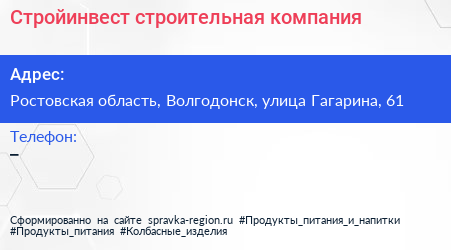 Стройинвест, строительная компания по адресу Ростовская область, Волгодонск, улица Гагарина, 61 в дальнейшем Организация, размещена в следующих категориях: