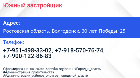 Южный застройщик по адресу Ростовская область, Волгодонск, 30 лет Победы, 25 в дальнейшем Организация, размещена в следующих категориях: