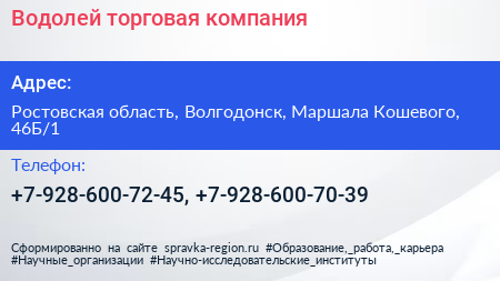 Водолей, торговая компания по адресу Ростовская область, Волгодонск, Маршала Кошевого, 46Б/1 в дальнейшем Организация, размещена в следующих категориях: