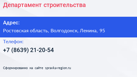 Департамент строительства по адресу Ростовская область, Волгодонск, Ленина, 95 в дальнейшем Организация, размещена в следующих категориях: