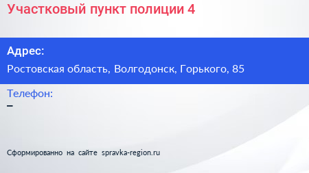 Участковый пункт полиции №4 по адресу Ростовская область, Волгодонск, Горького, 85 в дальнейшем Организация, размещена в следующих категориях: