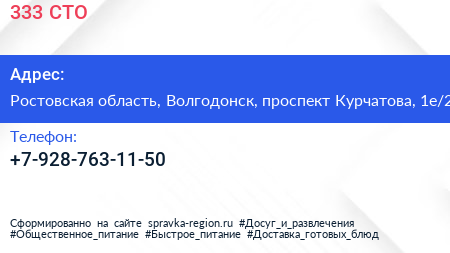 333, СТО по адресу Ростовская область, Волгодонск, проспект Курчатова, 1е/2 в дальнейшем Организация, размещена в следующих категориях: