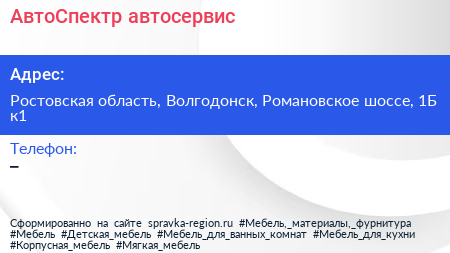 АвтоСпектр, автосервис по адресу Ростовская область, Волгодонск, Романовское шоссе, 1Б к1 в дальнейшем Организация, размещена в следующих категориях: