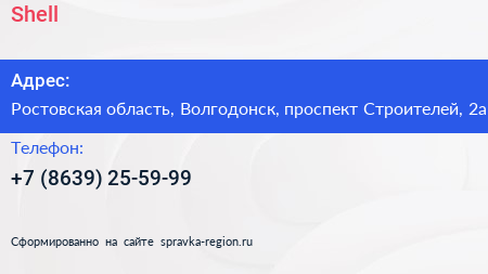 Shell по адресу Ростовская область, Волгодонск, проспект Строителей, 2а в дальнейшем Организация, размещена в следующих категориях: