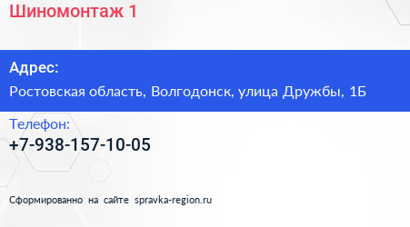 Шиномонтаж №1 по адресу Ростовская область, Волгодонск, улица Дружбы, 1Б в дальнейшем Организация, размещена в следующих категориях:
