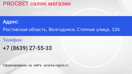 PROСВЕТ, салон-магазин по адресу Ростовская область, Волгодонск, Степная улица, 126 в дальнейшем Организация, размещена в следующих категориях: