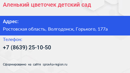 Аленький цветочек, детский сад по адресу Ростовская область, Волгодонск, Горького, 177а в дальнейшем Организация, размещена в следующих категориях: