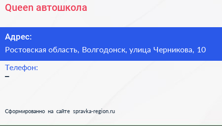 Queen, автошкола по адресу Ростовская область, Волгодонск, улица Черникова, 10 в дальнейшем Организация, размещена в следующих категориях: