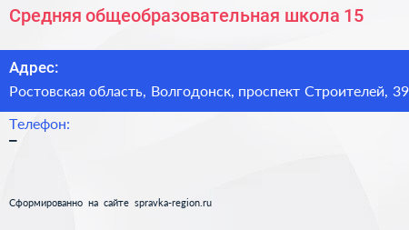 Средняя общеобразовательная школа №15 по адресу Ростовская область, Волгодонск, проспект Строителей, 39 в дальнейшем Организация, размещена в следующих категориях: