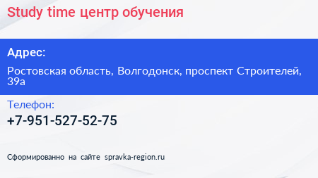 Study time, центр обучения по адресу Ростовская область, Волгодонск, проспект Строителей, 39а в дальнейшем Организация, размещена в следующих категориях:
