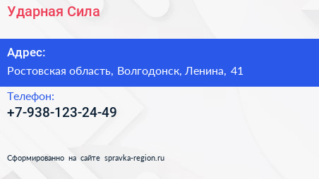 Ударная Сила по адресу Ростовская область, Волгодонск, Ленина, 41 в дальнейшем Организация, размещена в следующих категориях: