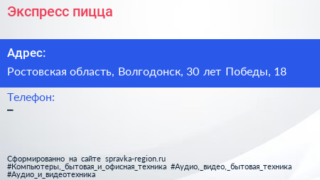 Экспресс пицца по адресу Ростовская область, Волгодонск, 30 лет Победы, 18 в дальнейшем Организация, размещена в следующих категориях: