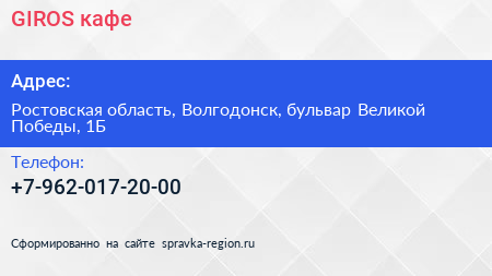 GIROS, кафе по адресу Ростовская область, Волгодонск, бульвар Великой Победы, 1Б в дальнейшем Организация, размещена в следующих категориях: