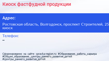 Киоск фастфудной продукции по адресу Ростовская область, Волгодонск, проспект Строителей, 25 киоск в дальнейшем Организация, размещена в следующих категориях: