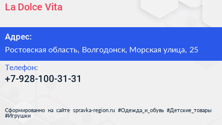 La-Dolce-Vita по адресу Ростовская область, Волгодонск, Морская улица, 25 в дальнейшем Организация, размещена в следующих категориях: