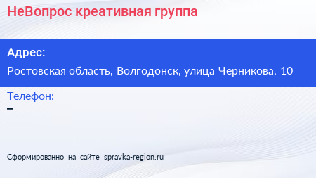 НеВопрос, креативная группа по адресу Ростовская область, Волгодонск, улица Черникова, 10 в дальнейшем Организация, размещена в следующих категориях: