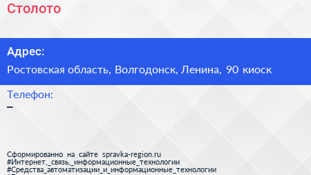 Столото по адресу Ростовская область, Волгодонск, Ленина, 90 киоск в дальнейшем Организация, размещена в следующих категориях: