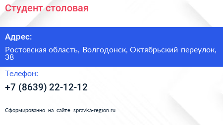 Студент, столовая по адресу Ростовская область, Волгодонск, Октябрьский переулок, 38 в дальнейшем Организация, размещена в следующих категориях: