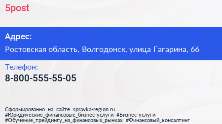 5post по адресу Ростовская область, Волгодонск, улица Гагарина, 66 в дальнейшем Организация, размещена в следующих категориях: