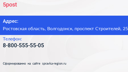 5post по адресу Ростовская область, Волгодонск, проспект Строителей, 25 в дальнейшем Организация, размещена в следующих категориях: