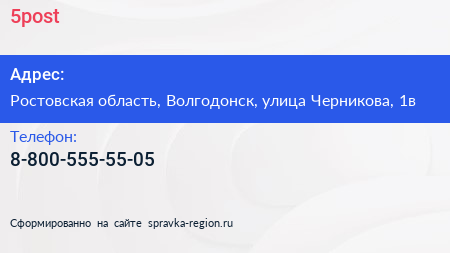 5post по адресу Ростовская область, Волгодонск, улица Черникова, 1в в дальнейшем Организация, размещена в следующих категориях:
