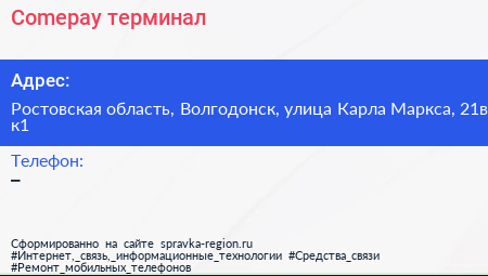 Comepay, терминал по адресу Ростовская область, Волгодонск, улица Карла Маркса, 21в к1 в дальнейшем Организация, размещена в следующих категориях:
