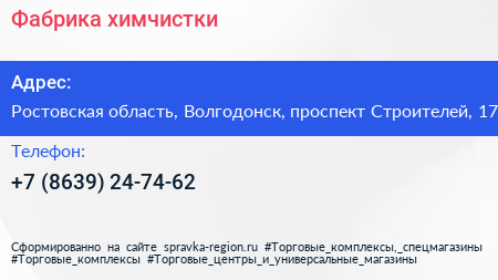 Фабрика химчистки по адресу Ростовская область, Волгодонск, проспект Строителей, 17 в дальнейшем Организация, размещена в следующих категориях: