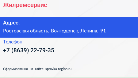 Жилремсервис по адресу Ростовская область, Волгодонск, Ленина, 91 в дальнейшем Организация, размещена в следующих категориях: