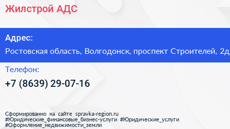 Жилстрой АДС по адресу Ростовская область, Волгодонск, проспект Строителей, 2д в дальнейшем Организация, размещена в следующих категориях: