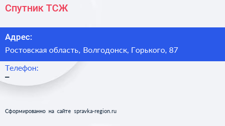 Спутник, ТСЖ по адресу Ростовская область, Волгодонск, Горького, 87 в дальнейшем Организация, размещена в следующих категориях: