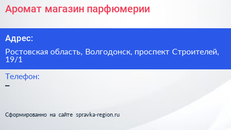 Аромат, магазин парфюмерии по адресу Ростовская область, Волгодонск, проспект Строителей, 19/1 в дальнейшем Организация, размещена в следующих категориях: