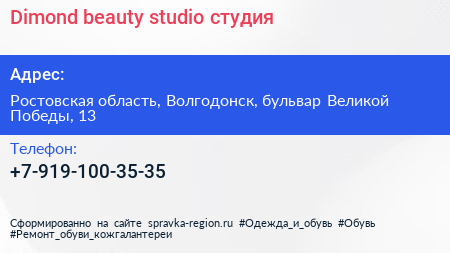 Dimond beauty studio, студия по адресу Ростовская область, Волгодонск, бульвар Великой Победы, 13 в дальнейшем Организация, размещена в следующих категориях: