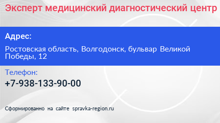 Эксперт, медицинский диагностический центр по адресу Ростовская область, Волгодонск, бульвар Великой Победы, 12 в дальнейшем Организация, размещена в следующих категориях: