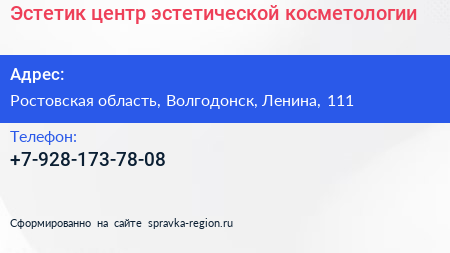 Эстетик, центр эстетической косметологии по адресу Ростовская область, Волгодонск, Ленина, 111 в дальнейшем Организация, размещена в следующих категориях:
