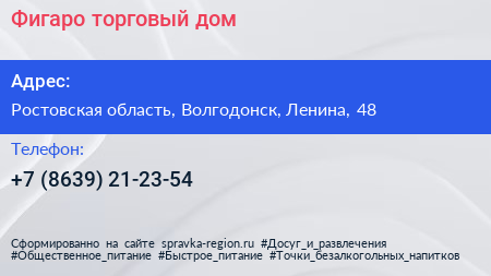 Фигаро, торговый дом по адресу Ростовская область, Волгодонск, Ленина, 48 в дальнейшем Организация, размещена в следующих категориях: