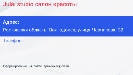 Julai studio, салон красоты по адресу Ростовская область, Волгодонск, улица Черникова, 32 в дальнейшем Организация, размещена в следующих категориях: