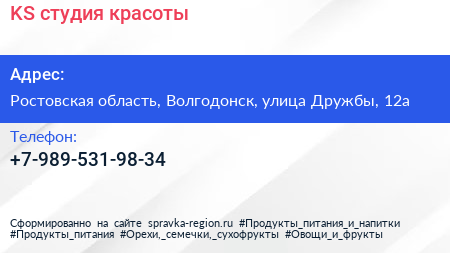KS, студия красоты по адресу Ростовская область, Волгодонск, улица Дружбы, 12а в дальнейшем Организация, размещена в следующих категориях: