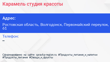 Карамель, студия красоты по адресу Ростовская область, Волгодонск, Первомайский переулок, 61 в дальнейшем Организация, размещена в следующих категориях: