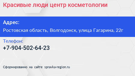 Красивые люди, центр косметологии по адресу Ростовская область, Волгодонск, улица Гагарина, 22г в дальнейшем Организация, размещена в следующих категориях:
