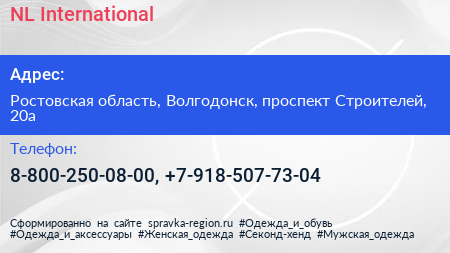 NL International по адресу Ростовская область, Волгодонск, проспект Строителей, 20а в дальнейшем Организация, размещена в следующих категориях: